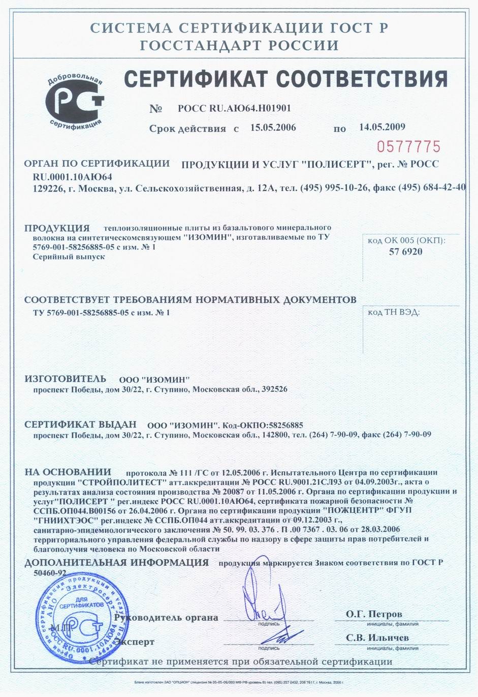 Утеплитель Изомин РУФ-Н 50х500х1000